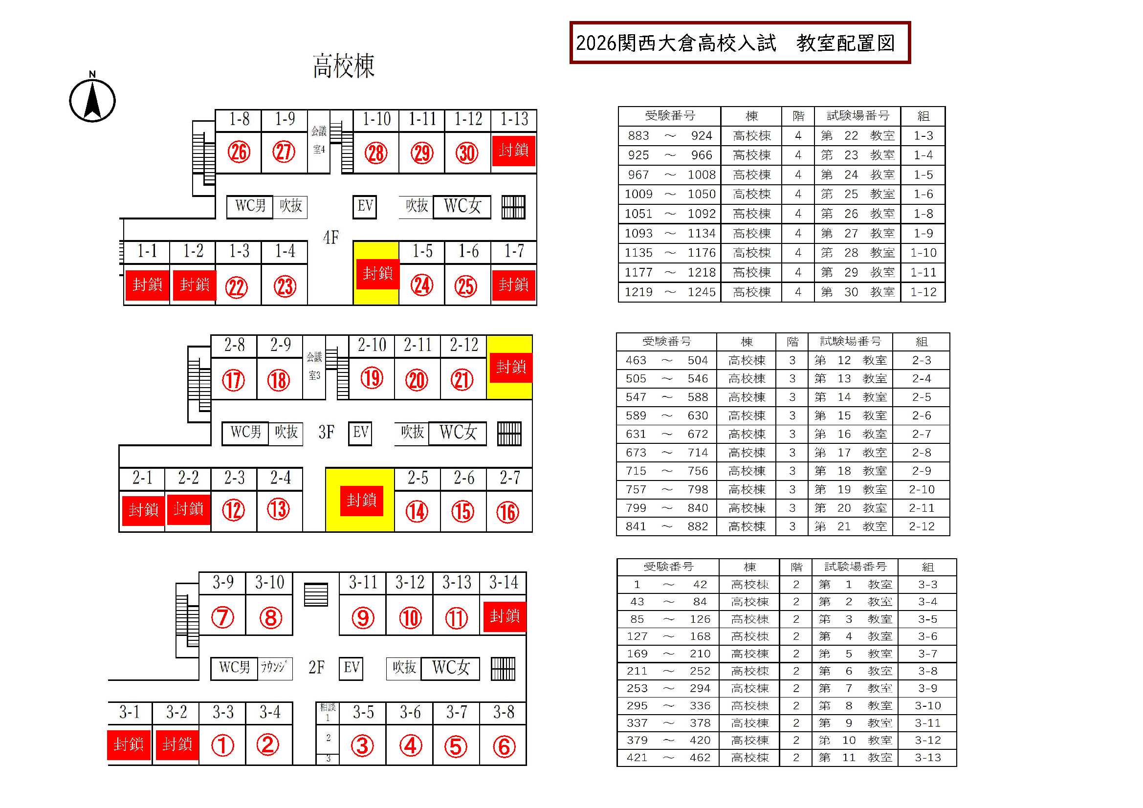 →2026関西大倉高校入試 教室配置図