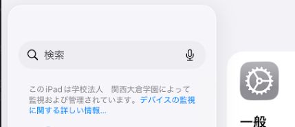 Q1、管理のアプリを開くと左上に「このiPadは学校法人 関西大倉学園によって監視および管理されています。」と