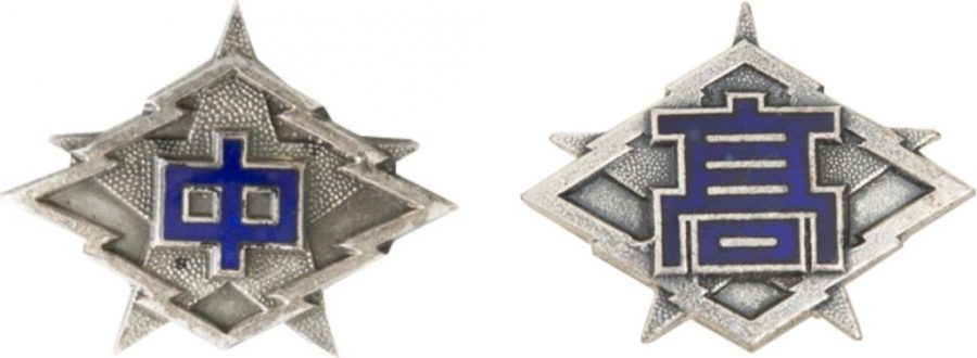 この菱形、正確には五階菱というのですが、大倉家の家紋を用いたものになっています。出身の新潟県新発田市の市章や創立者が同じ大倉喜八郎翁によって韓国に設立された姉妹校の善隣商業学校(現・善隣インターネット高校)の以前の校章にも五階菱が使われていました。交流のなかった両校の同じルーツ、歴史を証明するものでした。