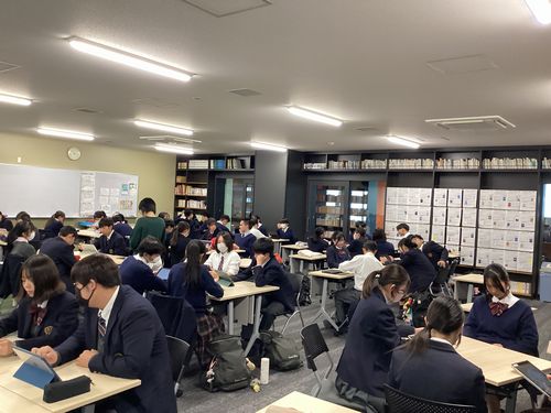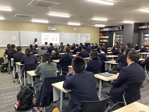 11月20日(木) 本校卒業生でもある大阪大学外国語学部スペイン語専攻の学生さんが、「外国ルーツと留学」「自己開示」についての授業をしてくださいました。特に大切だと言われていたのは「自己開示」。その際に心がけてほしいことは、「相手のことを聞く時は自分のことも言うこと」。お互いの立場が対等であれば自己開示はうまくできるようになり、自分の居場所も増えるということを、体験談も交えて語りかけてくださいました。彼女の新鮮な助言を受けながら、生徒たちも楽しそうに一生懸命探究活動に取り組んでいました。貴重なお時間をありがとうございました。