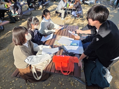 連休最終日ということもあり、秋晴れの下、家族連れで大賑わいでした。寒いところが得意な夜行性のトラが相手なので、今日は昼から閉園までの観察となりました。観察方法の確認を行い参加生徒で協力して観察していきます。前回と違い、動く様子が多くみられました。2時半ごろのおやつタイムでは、飼育員さんが工夫して食べにくい場所に隠した餌を上手に探して見つけて食べる姿が見られ、エンリッチメントのヒントになったようです。