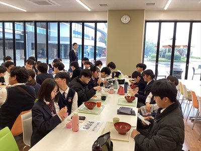 昼食は、食堂で本校生と一緒にテーブルを囲み、日本の学校生活について話したり、韓国での生活について教えていただいたりと、短い時間の中でも交流が深まりました。