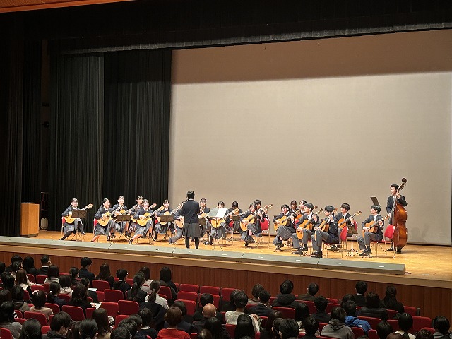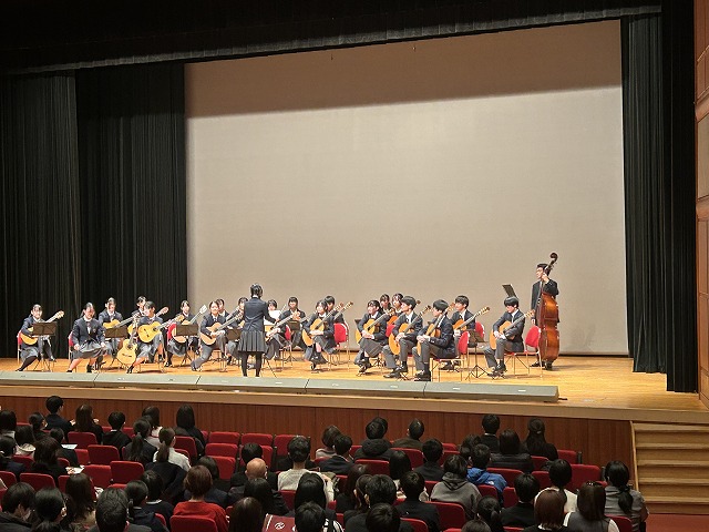 まず説明会の前に本校クラシックギタークラブによる歓迎演奏を聞いていただきましたが、いかがでしたでしょうか。
