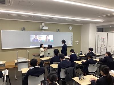 前回の事前学習では、sustainable や ethical といった概念について学びながら、消費者として私たちに何ができるのかを考えました。第5回となる今回は、一般社団法人理事の 末吉里花氏 をお迎えし、オンラインでご講演いただきました。講演では、エシカルに関心を持たれたきっかけや、なぜ今エシカルが必要とされているのか、日本の現状、そして私たち一人ひとりにできることについて、具体的でわかりやすくお話しいただきました。多くの情報や考えるヒントをいただいただけでなく、オンラインでありながらも、画面越しに末吉さんの想いや熱意が伝わる、心に残るご講演となりました。生徒たちも積極的に質問をするなど、意欲的に参加し、学びをさらに深める時間となりました。