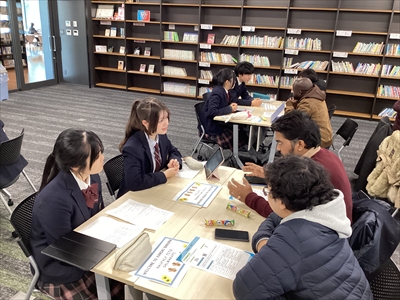 今回の交流では、より多様な視点から「私たちにできること」を考えるため、生徒を「ファッション業界」に関わる五つの役割に分け、ロールプレイを行いました。その上で、大阪大学の留学生から意見をもらい、英語でディスカッションを行いました。