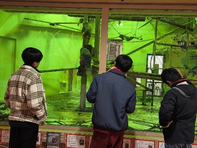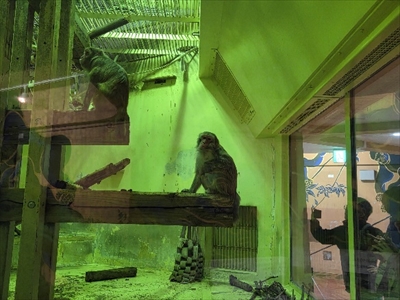 アカゲザルは高齢の個体が多いこともあり、ゆったりとした時間を過ごしています。屋内と屋外を行き来できるようになっていますが、雨や寒さもあって多くの個体が室内で過ごしていました。