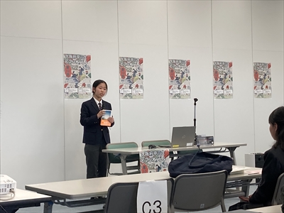 中学3年の梅津理奈さんが、1月11日(日)開催の大阪府ビブリオバトル中学生大会に出場しました。