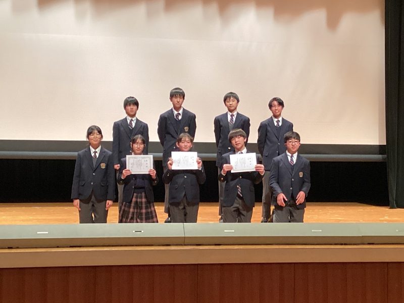 中学の総合学習の時間の取り組みの一つとして、1・2年生では弁論を、3年生は社会の様々な問題について、各代表者の発表を開催しました。
