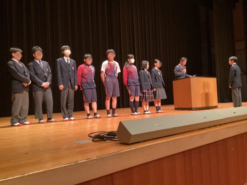 〇バスケットボール部と卓球部の表彰を行いました。