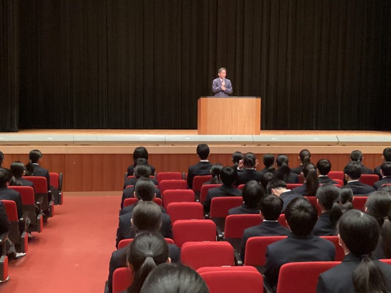 私からは、年々、受験生も増え、今年も173名の新入生を迎えることができました。みんなが楽しく頑張っている様子から、学校生活の充実を求めて入学につながっています。ただ、人の集団ですから、トラブルも起こります。この中には485種類の常識、価値観があり、違いは当たり前。その中で、まず、自分がされたら嫌なことはしない、言わない。もし迷惑をかけたのなら、しっかりと素直に謝るということを意識してほしいとお話しました。
