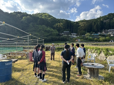 ニラの植え付け、ニンニクの芽とり、タマネギの収穫、マルチの隙間に生えた草抜きなどの農業体験をしたあと、農園を散策し、考えたことや質問を農園の方にぶつけ、様々なお話を伺いました。
